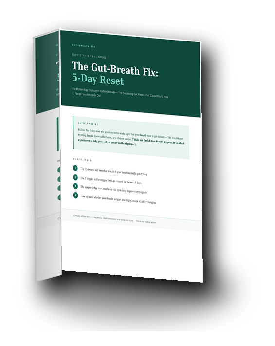 Most bad breath is oral, from gum disease, dry mouth, or bacteria on the teeth. This free protocol is specifically for the gut-driven sulfur pattern. Here is how it works: digestion slows, food ferments, H2S gas rises through the esophagus, and exits through your breath. Mouthwash can't reach that source.